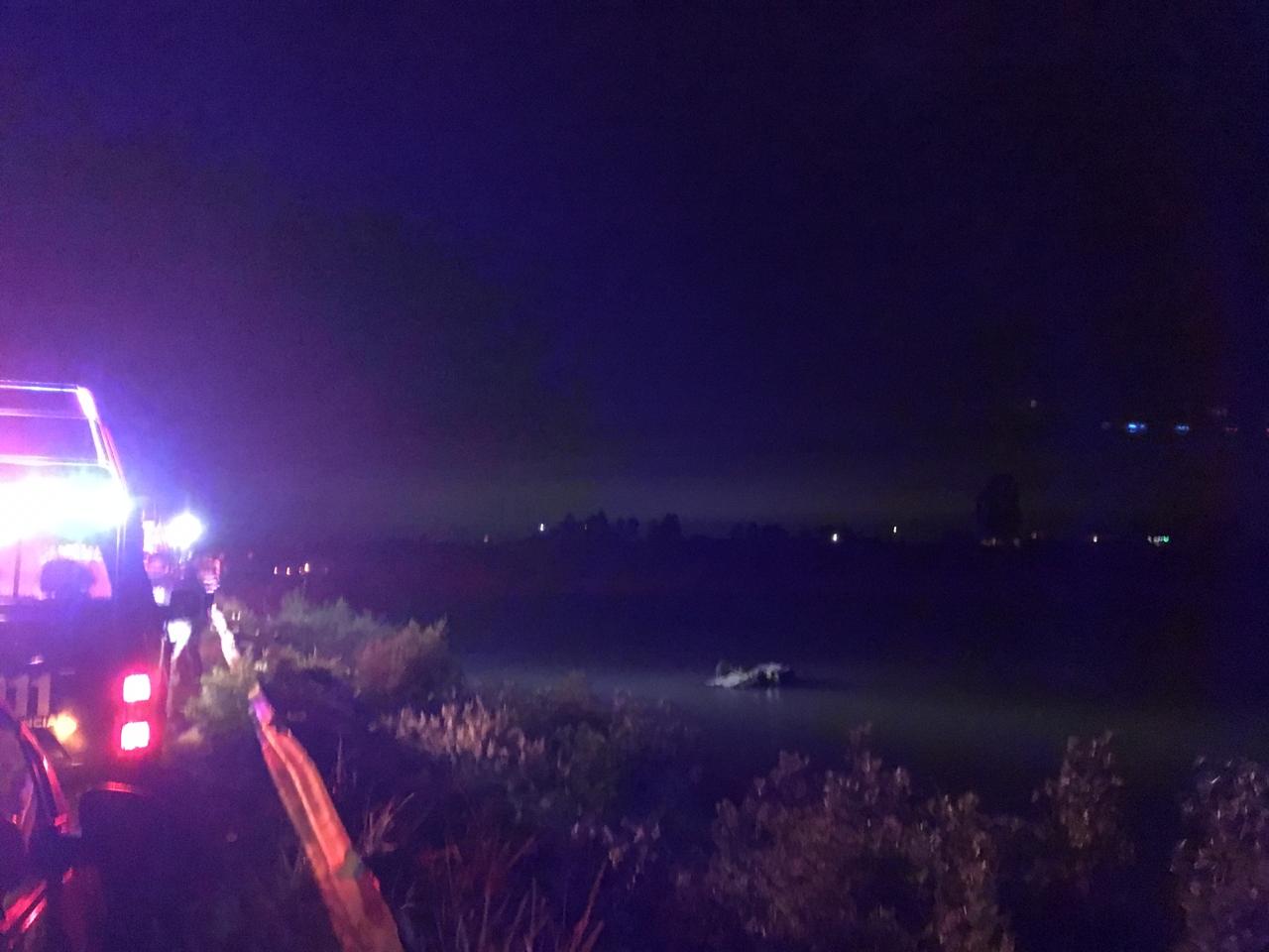 Cae vehículo en presa de la comunidad de Bravo, perteneciente al municipio de Corregidora. Por lo menos dos cuerpos se encuentran al interior del automóvil.