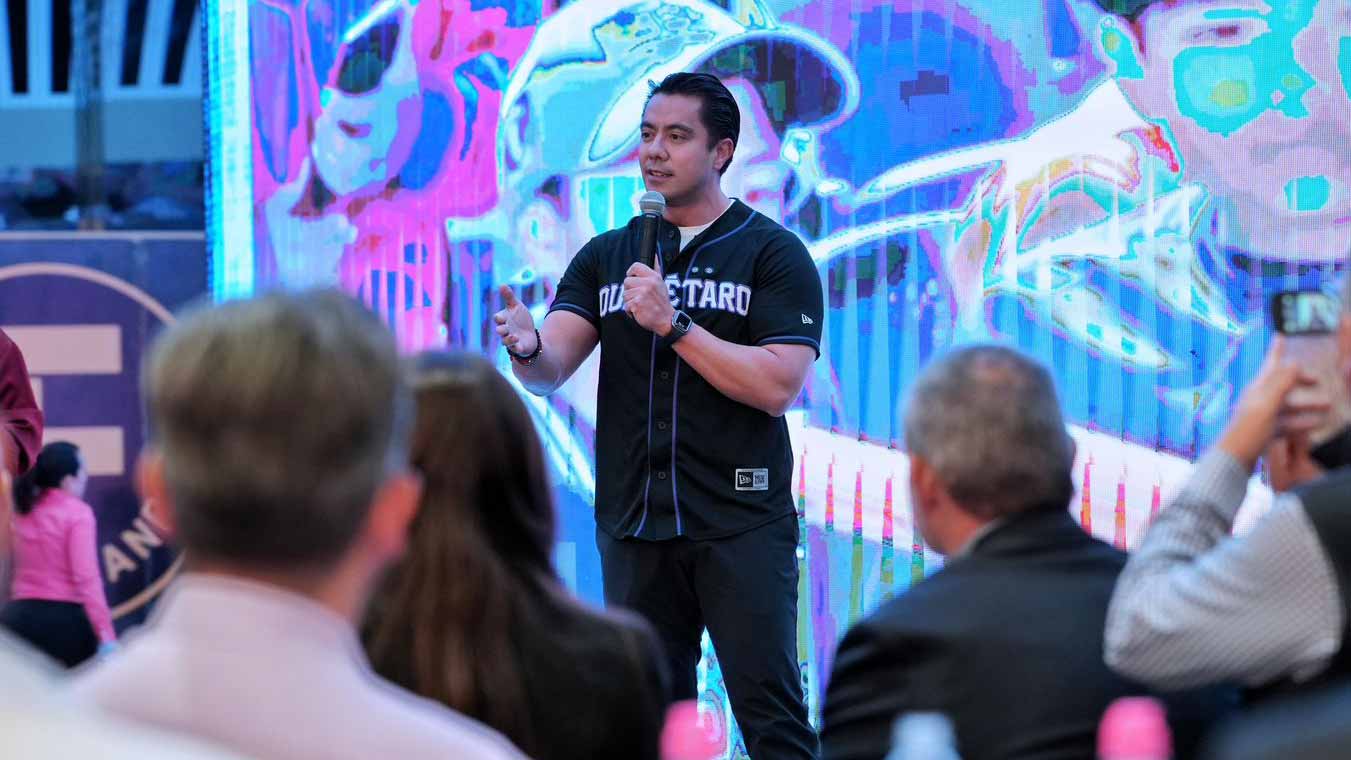 El presidente municipal, Felifer Macías, asistió a la presentación del uniforme para la nueva temporada del equipo de béisbol Conspiradores de Querétaro, donde reiteró la importancia de impulsar el deporte como parte del desarrollo social en el municipio.