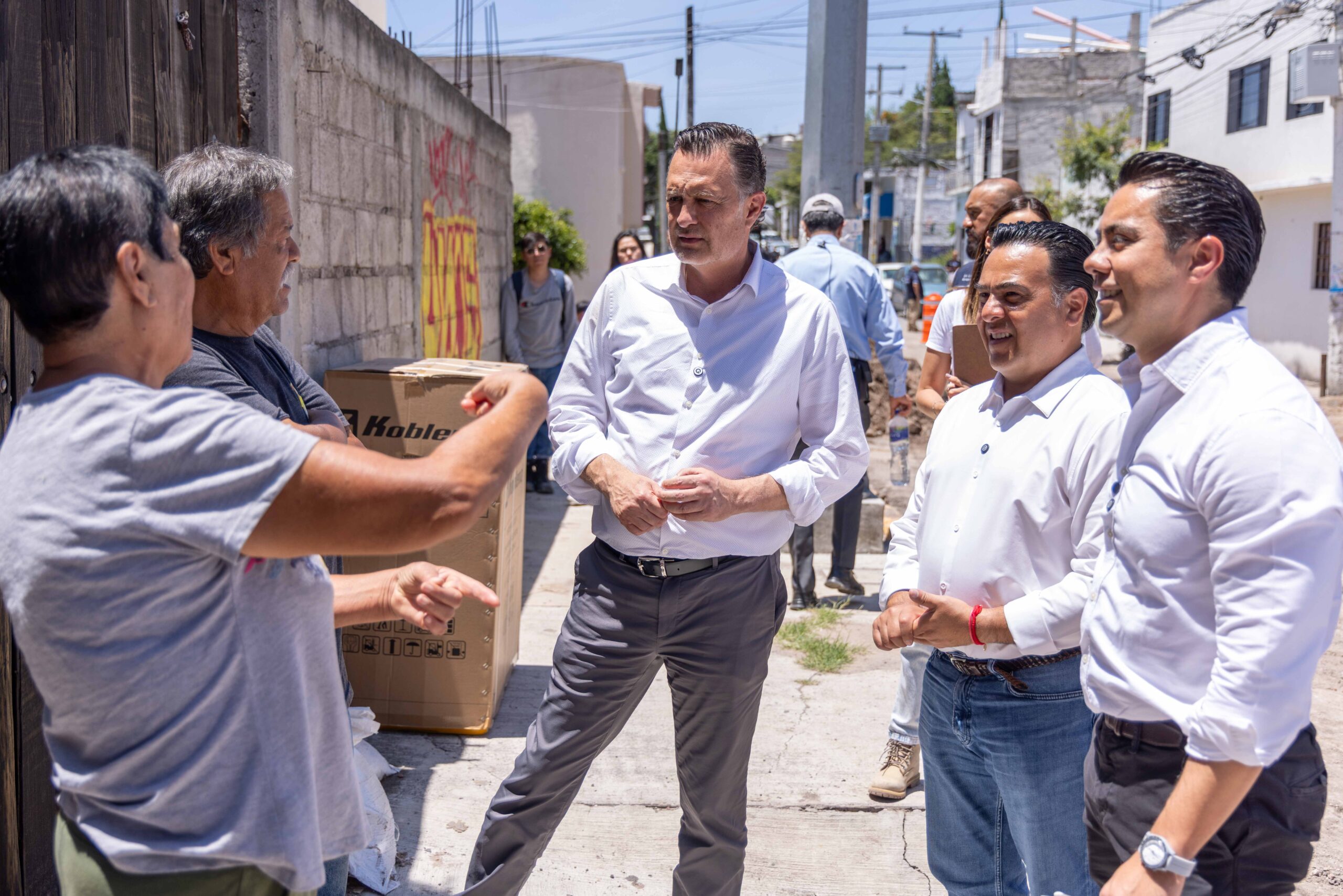 En seguimiento al anuncio realizado por el gobernador del estado, Mauricio Kuri González, y el presidente municipal de Querétaro, Felifer Macías, se llevó a cabo el arranque de la entrega de apoyos a las y los queretanos afectados por las lluvias de la semana pasada, con la distribución de enseres e incentivos económicos en la colonia San Pedrito Peñuelas, de la delegación Epigmenio González.