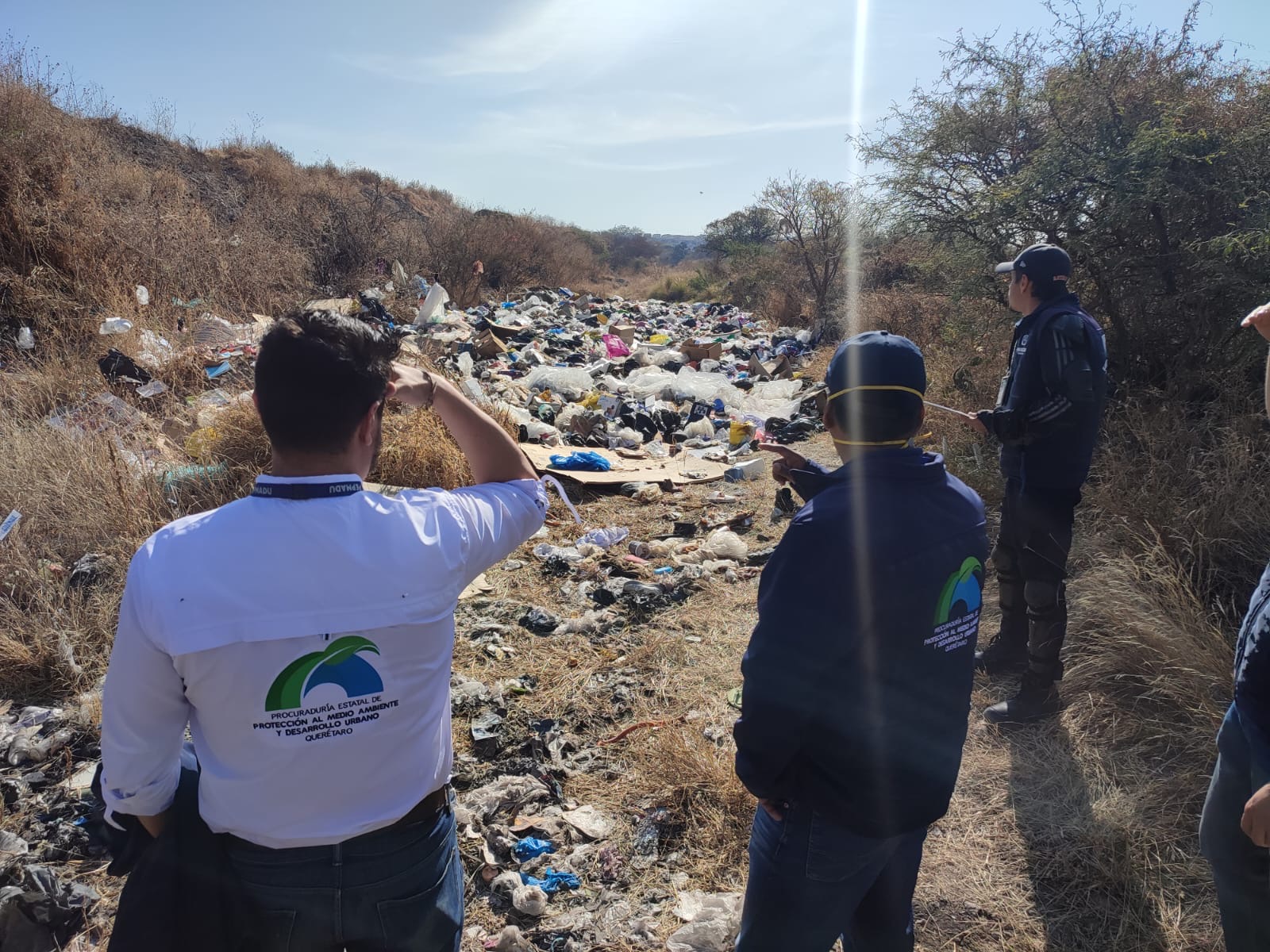 En atención a denuncias ciudadanas el personal de la Procuraduría Estatal de Protección al Medio Ambiente (PEPMADU) llevó a cabo una visita de inspección en un predio ubicado en la colindancia de la colonia Ciudad del Sol, en el municipio de Querétaro, sitio en el que se observó la disposición de residuos sólidos urbanos y de manejo especial, mismos que en algunas partes se observaba que habían sido quemados.