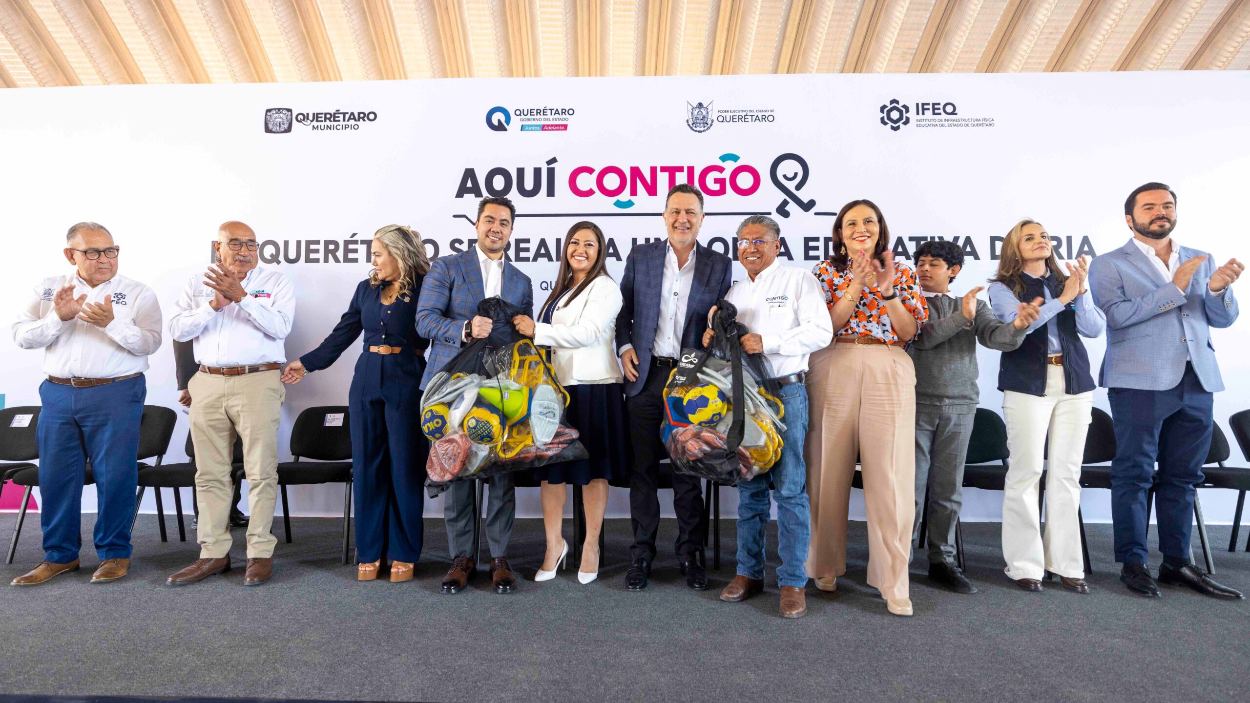 Durante el acto cívico, donde se rindieron honores a la bandera, y tras exaltar que en Querétaro se realiza una obra educativa diaria, el mandatario distribuyó kits deportivos a las y los estudiantes de los planteles, donde se reconstruyeron espacios completos, con aulas nuevas, que representan áreas dignas, servicios adecuados y condiciones que permiten un mejor desempeño escolar.